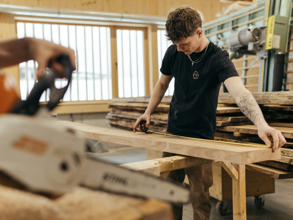 Heimisch, hochwertig, langlebig: In unserer Holzmanufaktur entstehen Möbelstücke, die Charakter haben. Ob Massivholz oder Furnier – wir setzen auf natürliche Materialien, traditionelle Holzverbindungen und handwerkliche Sorgfalt. Das Ergebnis: Einzelstücke, auf die wir stolz sind, geschaffen für Menschen, die Wert auf Qualität legen. Mit klarer Linie, viel Gespür – und der Liebe zum Holz.